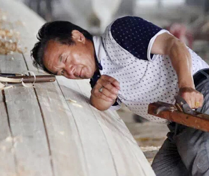 廠(chǎng)長(zhǎng)許桂生從事龍舟制作已有30余年歷史,為繼承祖?zhèn)髦圃忑堉鄹挥幸欢ǖ慕?jīng)驗(yàn)